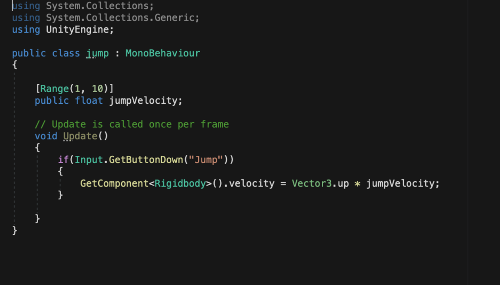 At the moment it is not really detecting if the player is jumping. I want to try the raycasting method and implement the controller methods of unity that are already built in. So a lot to test but I haven’t really figured out everything at the moment.